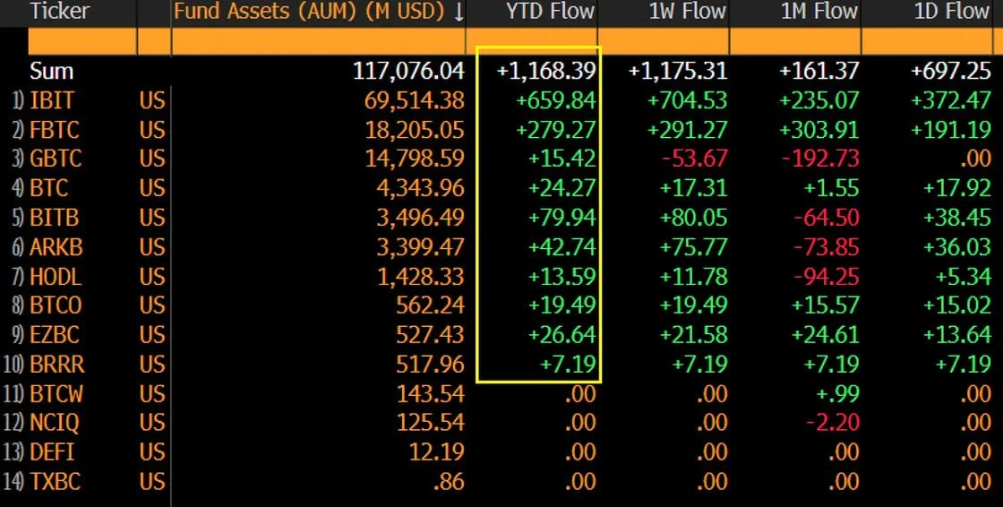 "The spot bitcoin ETFs are coming into 2026 like a lion, +$1.2b in flows in first two days of year w/ everyone eating. That's a $150b/yr pace. Told ya'll if they can take in $22b when it's raining, imagine when the sun is shining." — Eric Balchunas, Bloomberg Senior ETF Analyst