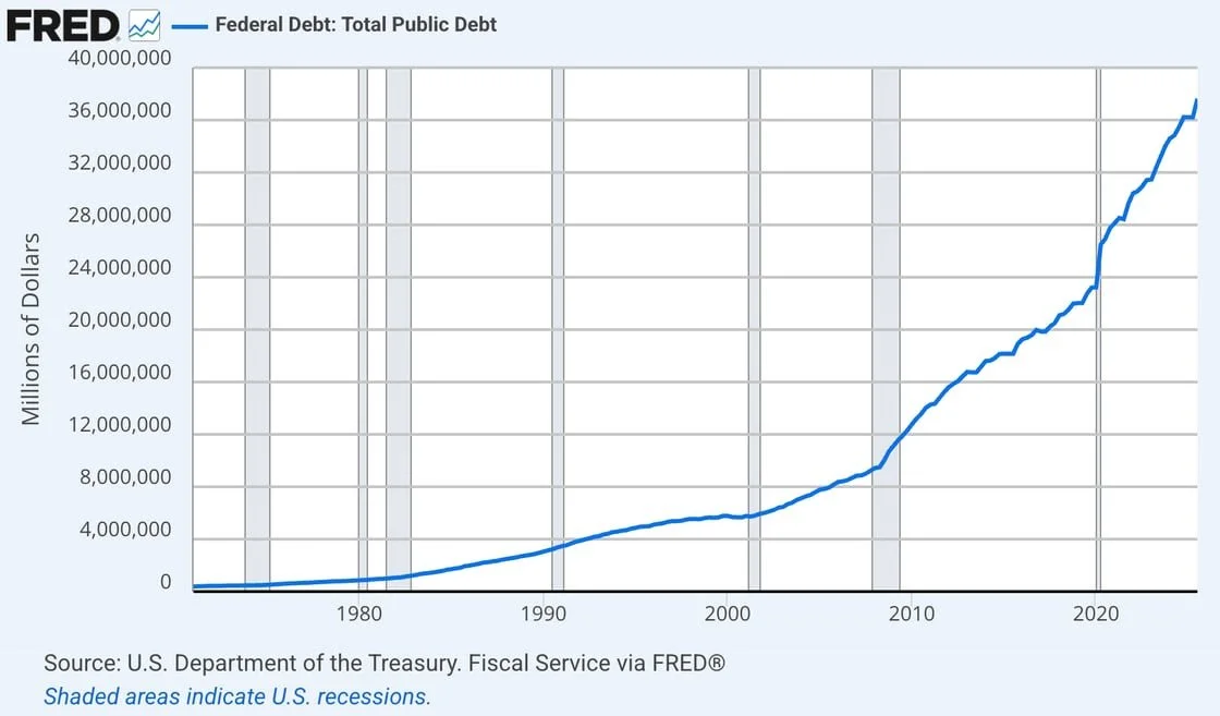 The idea is to sustain elevated nominal growth so that the debt-to-GDP ratio stabilizes through the expansion of the denominator rather than through fiscal austerity. In practice, this means tolerating inflation, suppressing real rates, and allowing the currency to weaken. Financial repression becomes the mechanism for managing an otherwise unmanageable debt load.